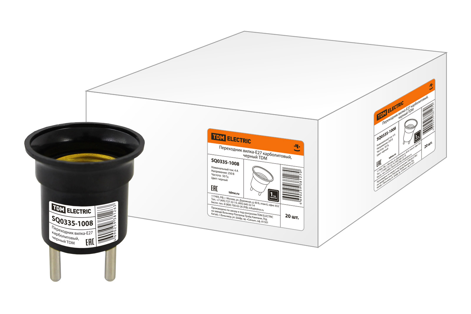 Переходник вилка-Е27 карболит TDM чёрный (20)