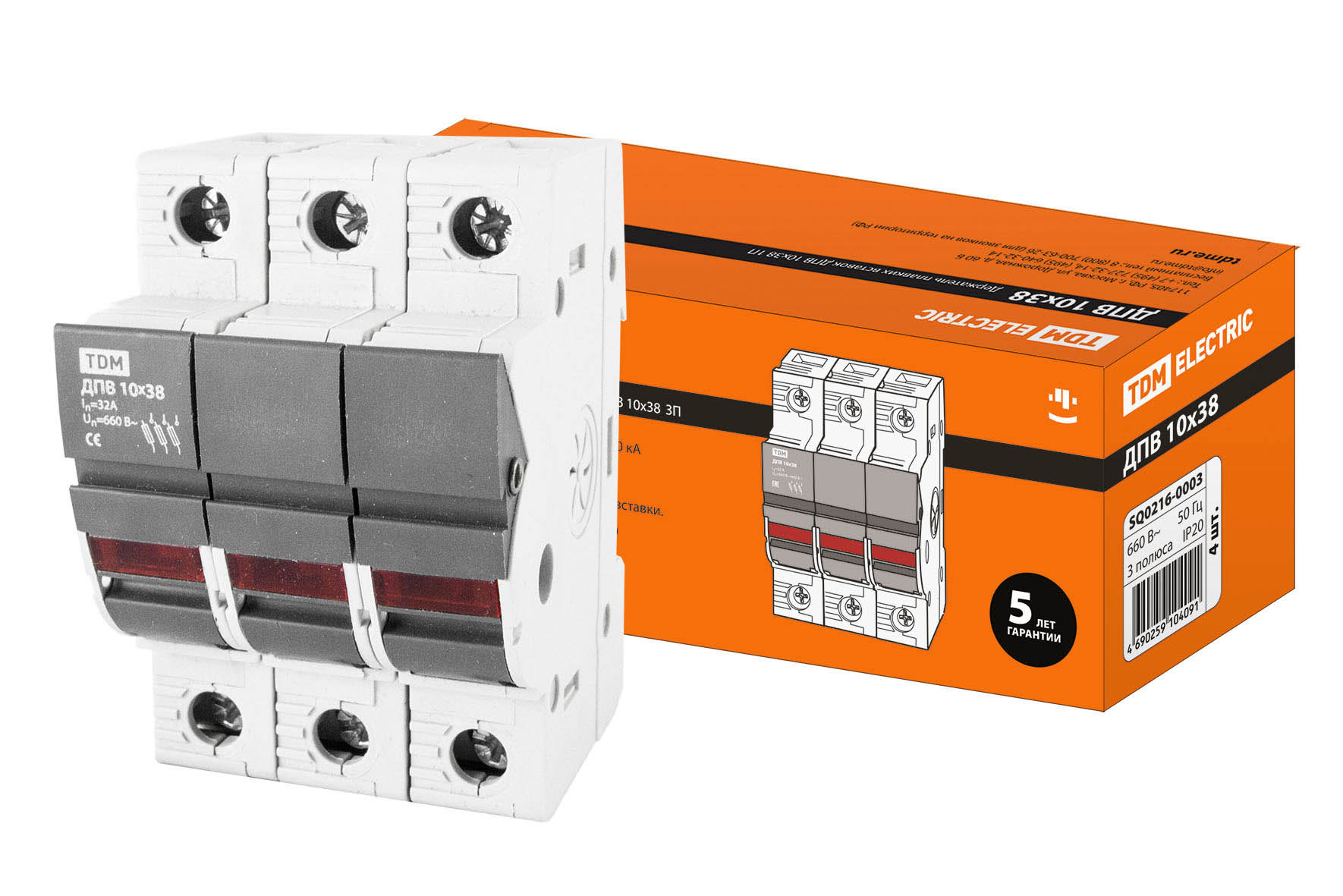 Держатель плавкой вставки TDM ДПВ 10х38 3П (4)