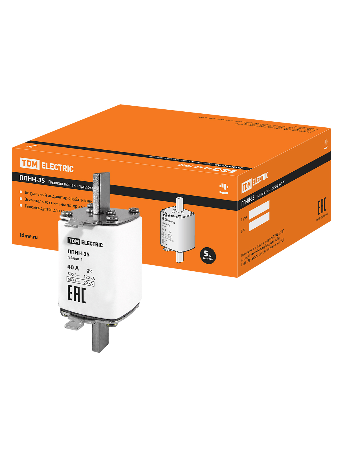 Вставка плавкая ППНН-35 TDM габ.1 40А (3)