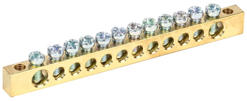 Шина без изолятора PEN 8x12мм 12 отверстий крепеж по краям Omnyx (10/220)