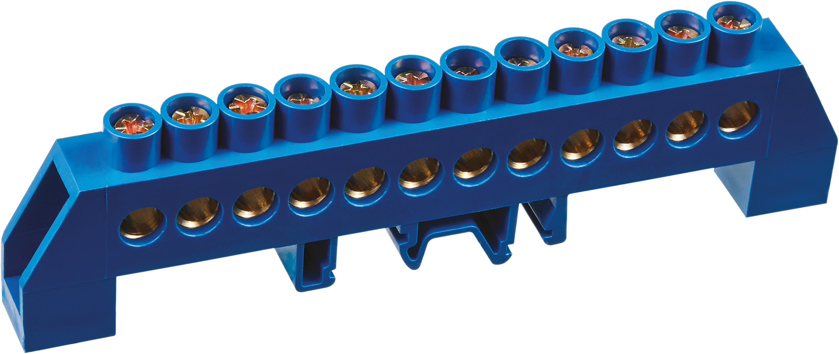 Шина N (ноль) комбинированный изолятор на DIN-рейку 6x9мм 12 отверстий латунь синий Omnyx (20/500)