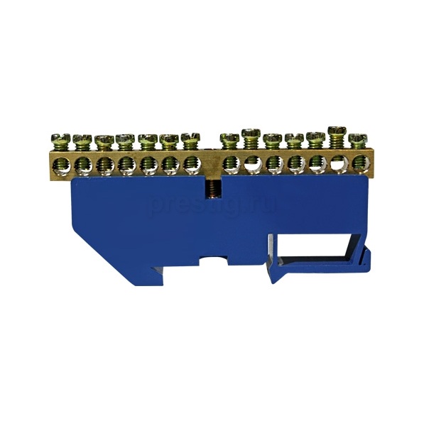 Шина нулевая на DIN 14/1 IEK 6x9мм изолятор синий (20/400)