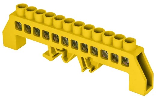 Шина PE (земля) в комбинированном изоляторе на DIN-рейку 8x12мм 12 отверстий латунь желтый Omnyx (20/200)