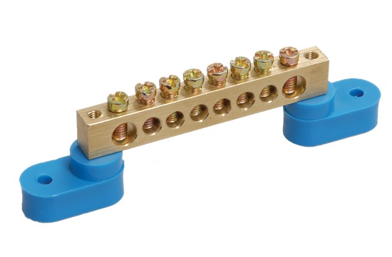 Шина нулевая на двух угл изол 6x9мм 8/2 синий IEK (10/500)
