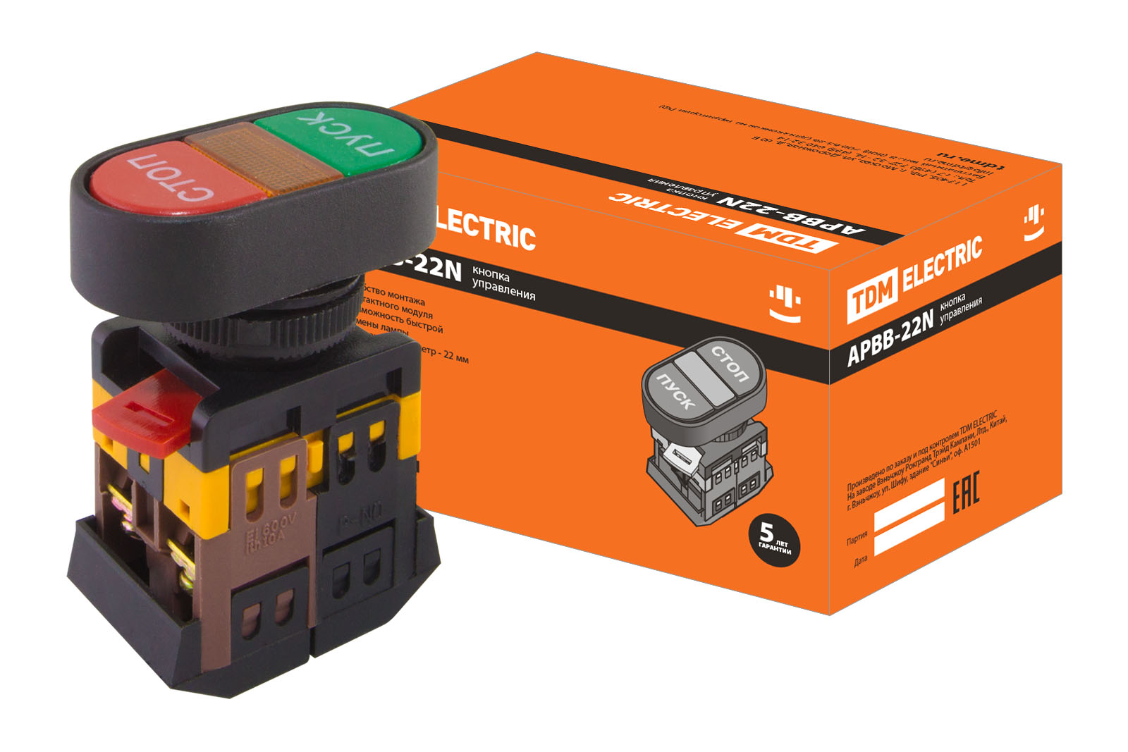 Кнопка двойная TDM APВВ-22N Пуск-Стоп 1з+1р 220В (10)