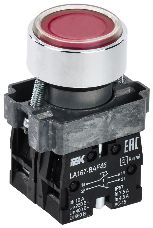 Кнопка IEK LA167-BAF45 1з+1р красный IP65 (10)