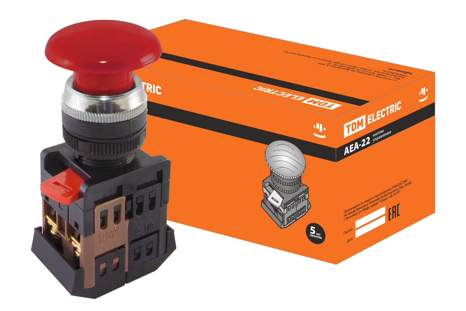Кнопка TDM AEA-22 Гриб 1з+1p 220В красный (10)