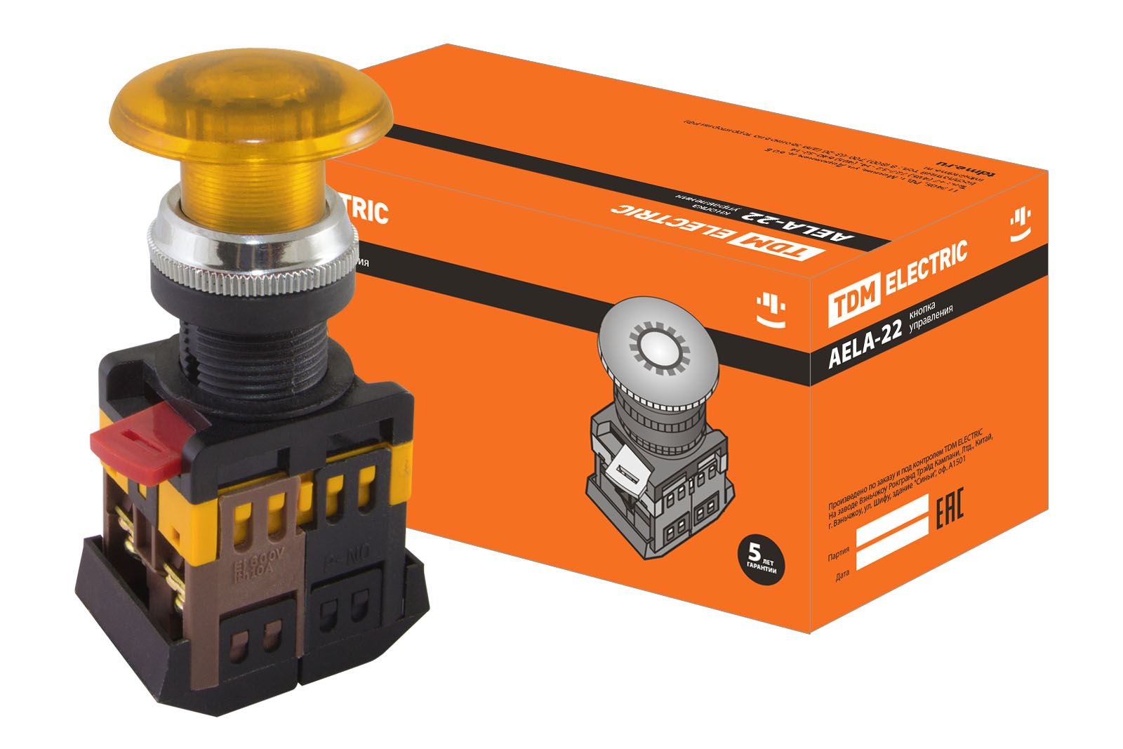 Кнопка TDM AELA-22 Гриб 1з+1p подсветка 220В жёлтый (10)