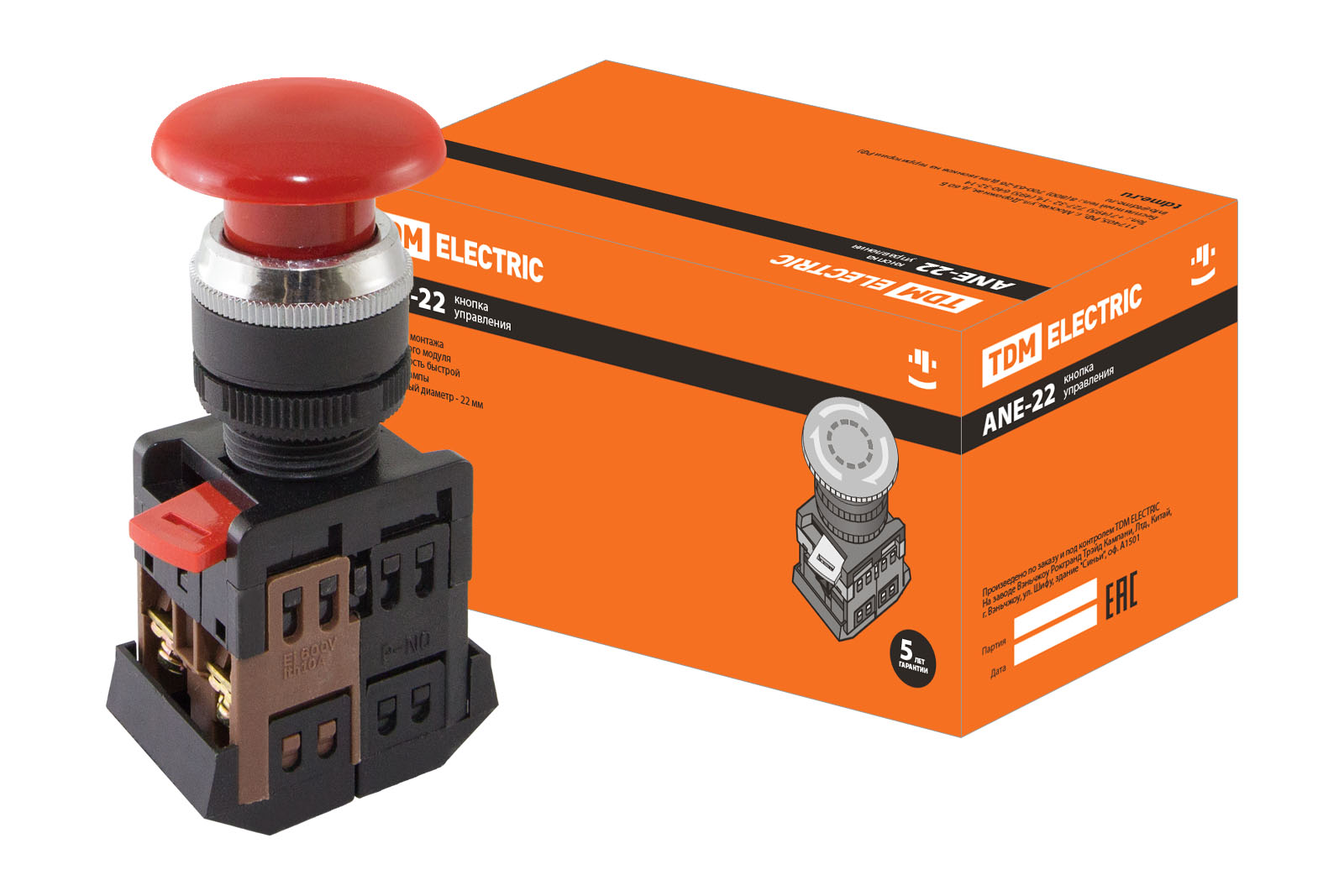 Кнопка TDM ANE-22 Гриб фиксируемая подсветка красный (10)