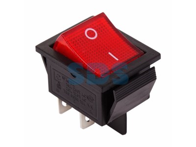 Выключатель клавишный 250V 20А (4с) ON-OFF красный с подсветкой предназначен для коммутации электрических цепей переменного тока напряжением до 250В. Клавишные (Рокерные) выключатели применяются в качестве комплектующих изделий различного электрооборудования (в сетевых фильтрах и удлинителях, аудио-оборудовании, блоках питания, электроустановках на различных производствах, автомобилях, и многих других местах). Такой клавишный переключатель имеет два положения. Принцип действия основан на перемещении клавиши в одну из позиций. Для переключения в нужное положение требуется приложить некоторые усилия на клавишу. Монтаж осуществляется без применения винтов на плоских панелях толщиной от 0.8мм до 3мм. Подключение контактов осуществляется плоской клеммой 6.6мм, либо с помощью пайки.