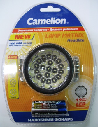 Фонарь налобный ный Camelion 5323-19Mx +3xR03 19LED (6/48)