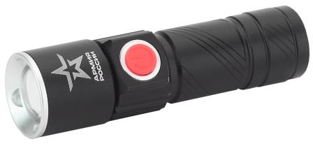 Фонарь ручной аккумуляторный Армия России MA-601 Циркон 3Вт LED линза 600 мАч 3 режима USB анодированный алюминий (12)