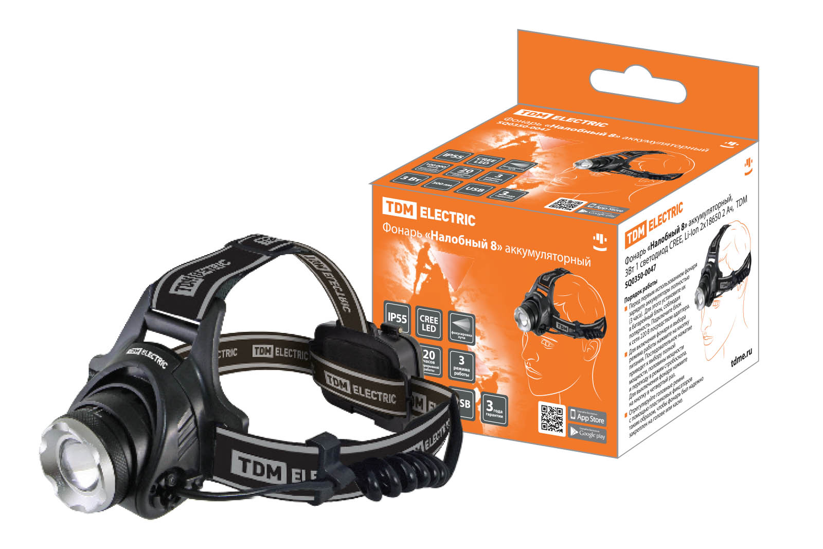 Фонарь налобный аккумуляторный TDM Налобный- 8 3Вт1LED 2x18650 2Ач (40)