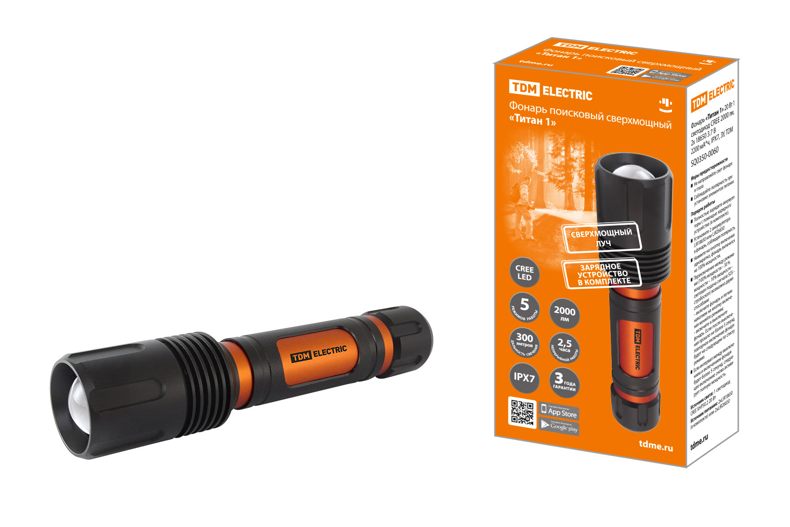 Фонарь ручной аккумуляторный TDM Титан-1 20Вт1LED 2000Лм 2x18650 2200мAч IPX7 (12)