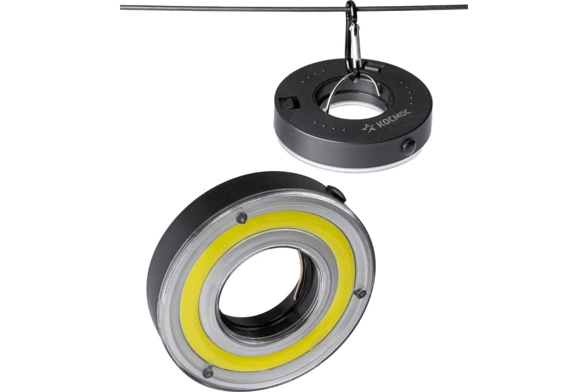 Компактный и очень легкий подвесной фонарь для палатки или кемпинга КОСМОС (KOC601B). Подвешивается на карабине (в комплекте). Для такого компактного размера, мощный широкий свет 5Вт - освещает пространство 14м2. Три режима работы – яркий, средний и мигающий. Источник света: 5 Вт COB LED; Источник питания: 3xAAA (в комплект не входят); Количество режимов: 3 (яркий-экономичный-мигающий); Световой поток: 110 лм.; Дистанция освещения: 14 м2; Корпус: ABS-пластик, IP41; Компактный размер: 8.8x8.8x2.0 см.; Карабин для подвешивания