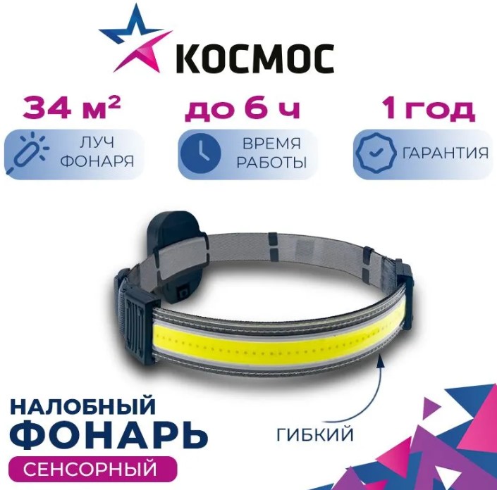 Фонарь налобный аккумуляторный Космос 504 20ВтCOB+2ВтXPE сенсор 102540 1200мАч (30/120)