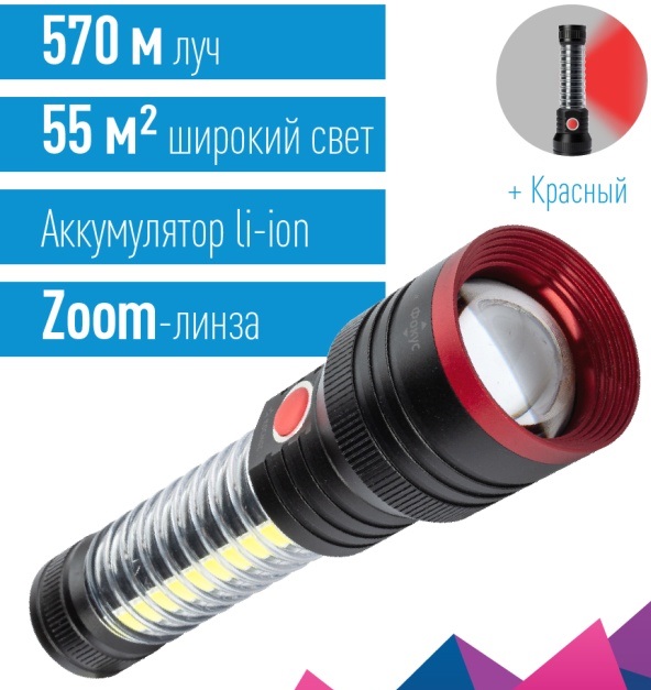 Фонарь ручной аккумуляторный Космос 132 10+5Вт+красный zoom магнит 2200мAч (20/40)