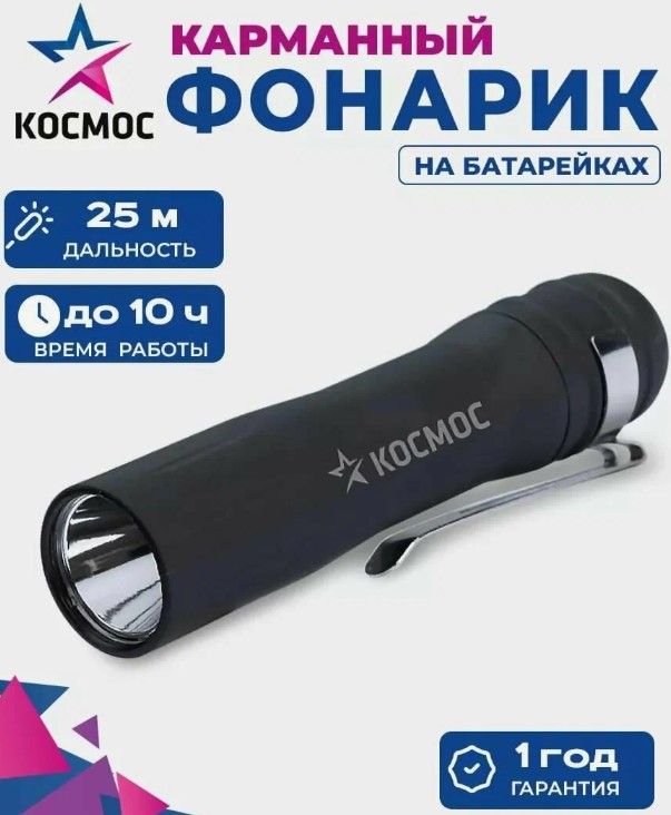 Фонарь ручной Космос 120B 0.5Вт 1xR6 зажим (24/144)
