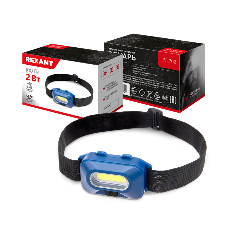 Фонарь налобный Rexant 72-702 2ВтCOB 3xR03 (144)
