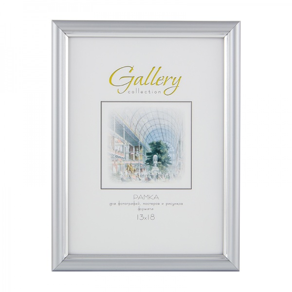 Рамка пластик 13x18 Gallery 636421-5 серебро тонкий гладкий с внутренним кантом (1/12)