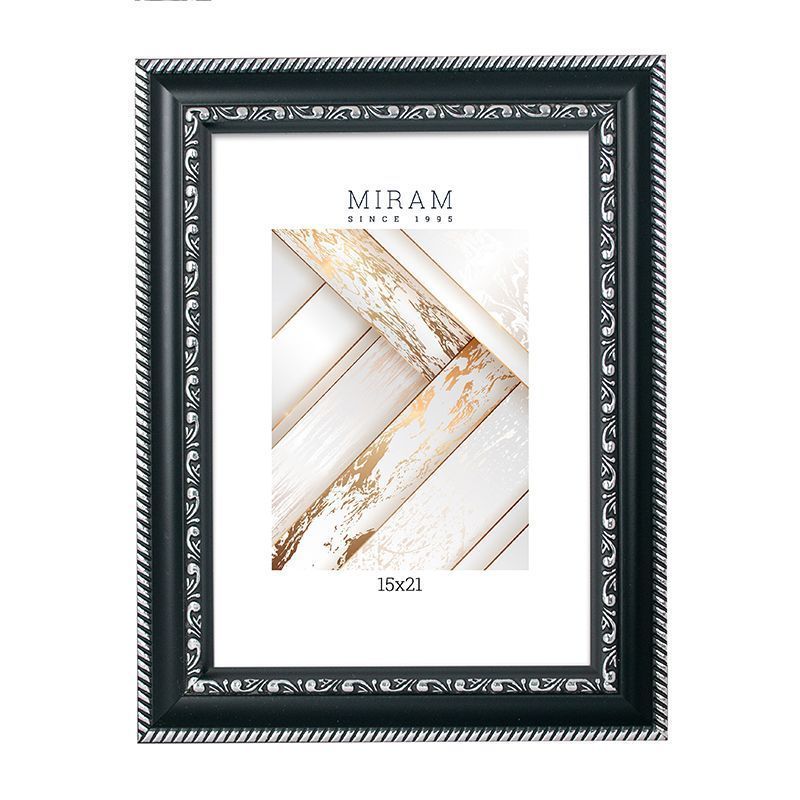 Рамка пластик 15x21 Мирам 644877-6 черный с серебряным орнаментом (12)