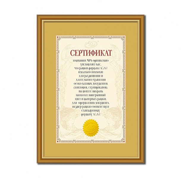 Рамка пластик 21x29,7 Мирам 636411-А4 золото тонкий с внутренним кантом (12)