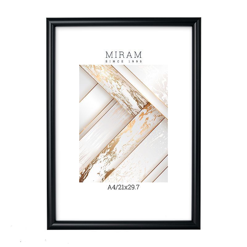 Рамка пластик 21x29,7 Мирам 642077-A4 черный с ножкой (1/12)