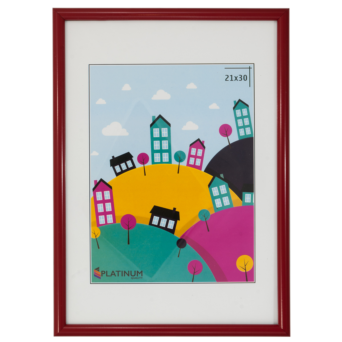 Недорогая пластиковая фоторамка 21х30 см со стеклом. Цвет красный. Ширина багета 13 мм.