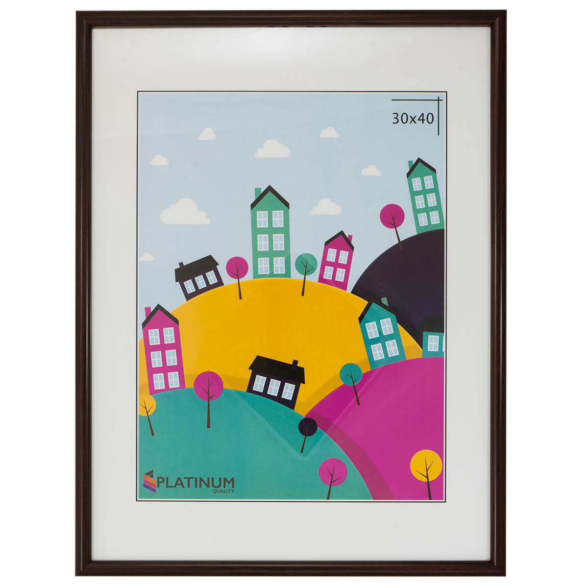 Недорогая пластиковая фоторамка 30x40 см со стеклом. Цвет венге. Ширина багета 13 мм.