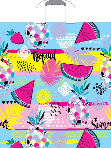Пакет ПВД с петлевой ручкой 38х42 37мкм Тропические фрукты (50)