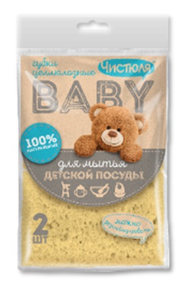 Губка для посуды Целлюлоза 2шт 9х6х2см Чистюля Бэби (10)