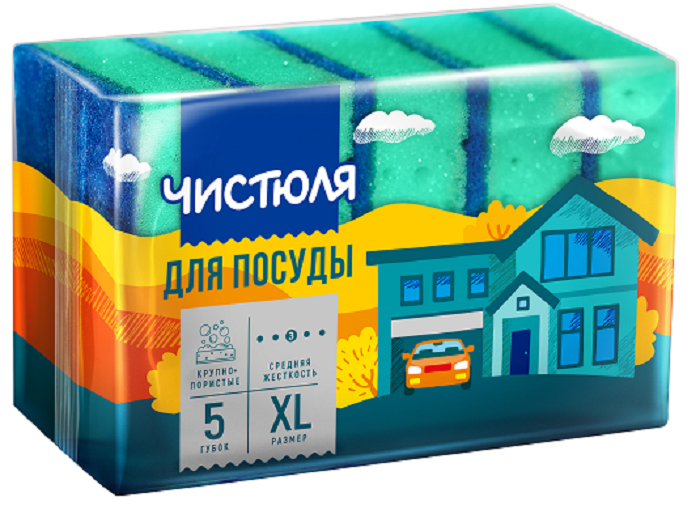 Губка для посуды XL 5шт Чистюля Пенный эффект (60)