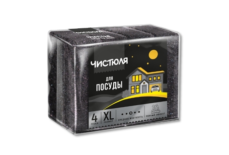 Губка для посуды XL 5шт Чистюля Пенный эффект черный (60)