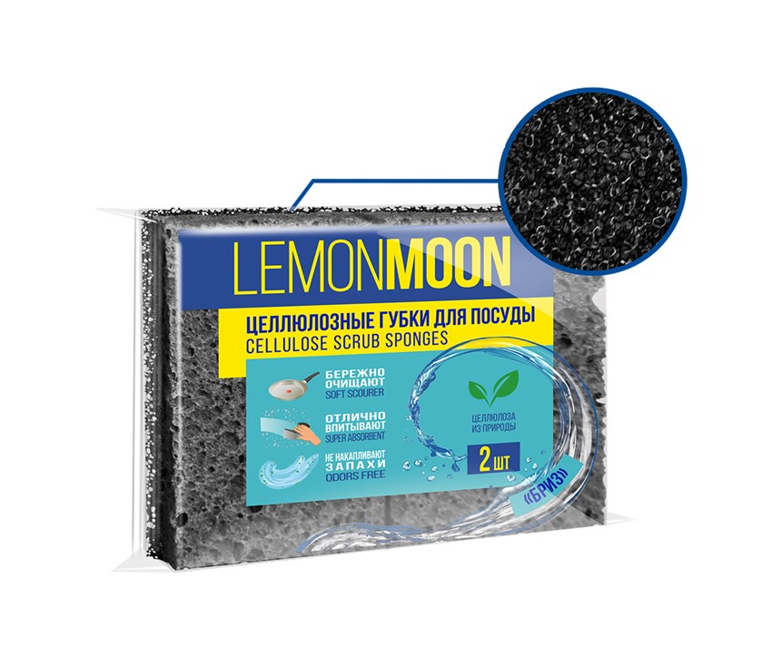 Губка д/посуды 2шт Целлюлоза д/мягкой очистки 110х65х25мм Lemon moon (16)