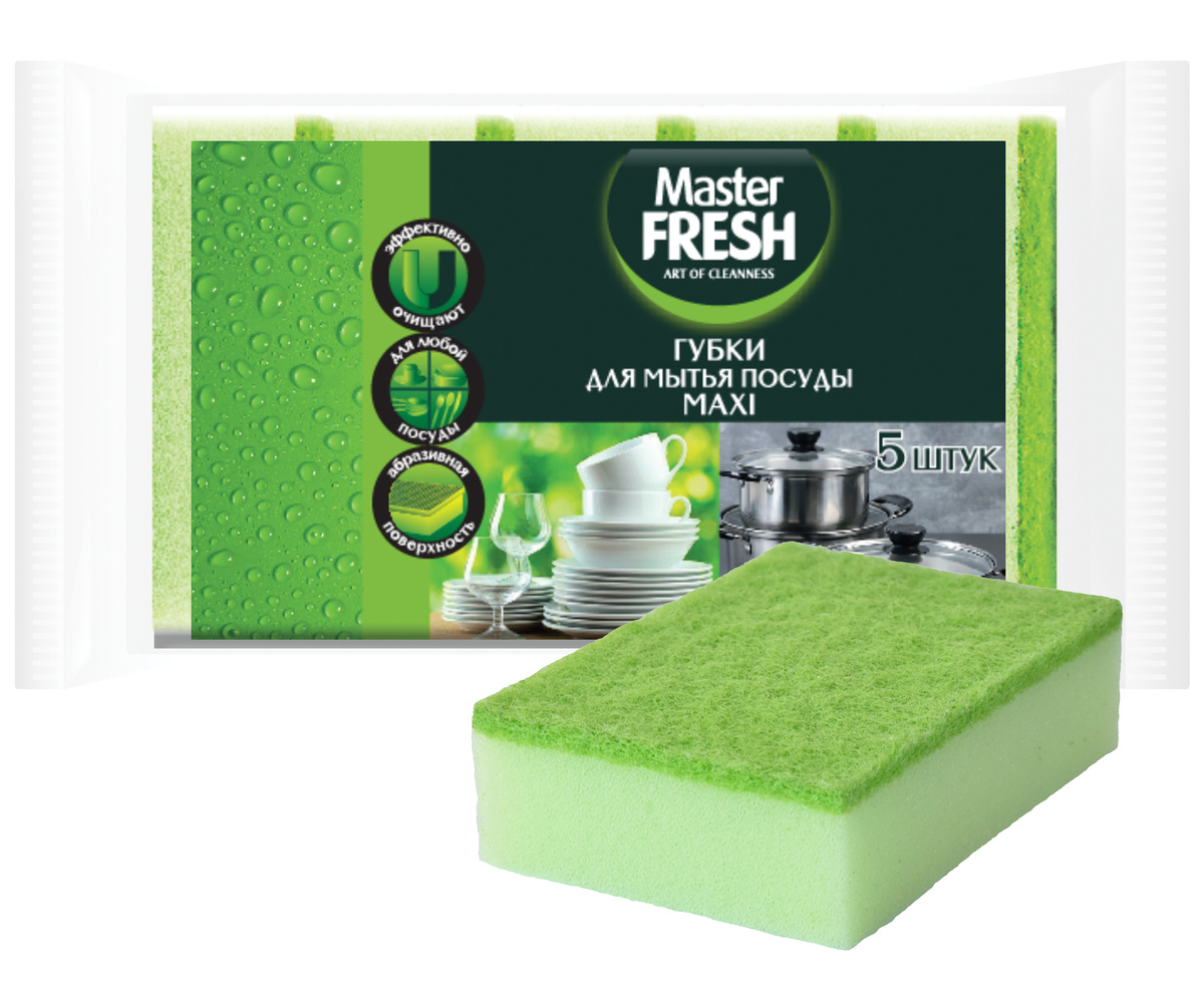 Губка д/посуды 5шт Master FRESH MAXI (36)