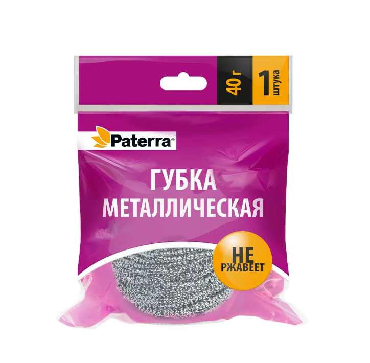 Мочалка из нержав стали 40гр спиральная Paterra (100)