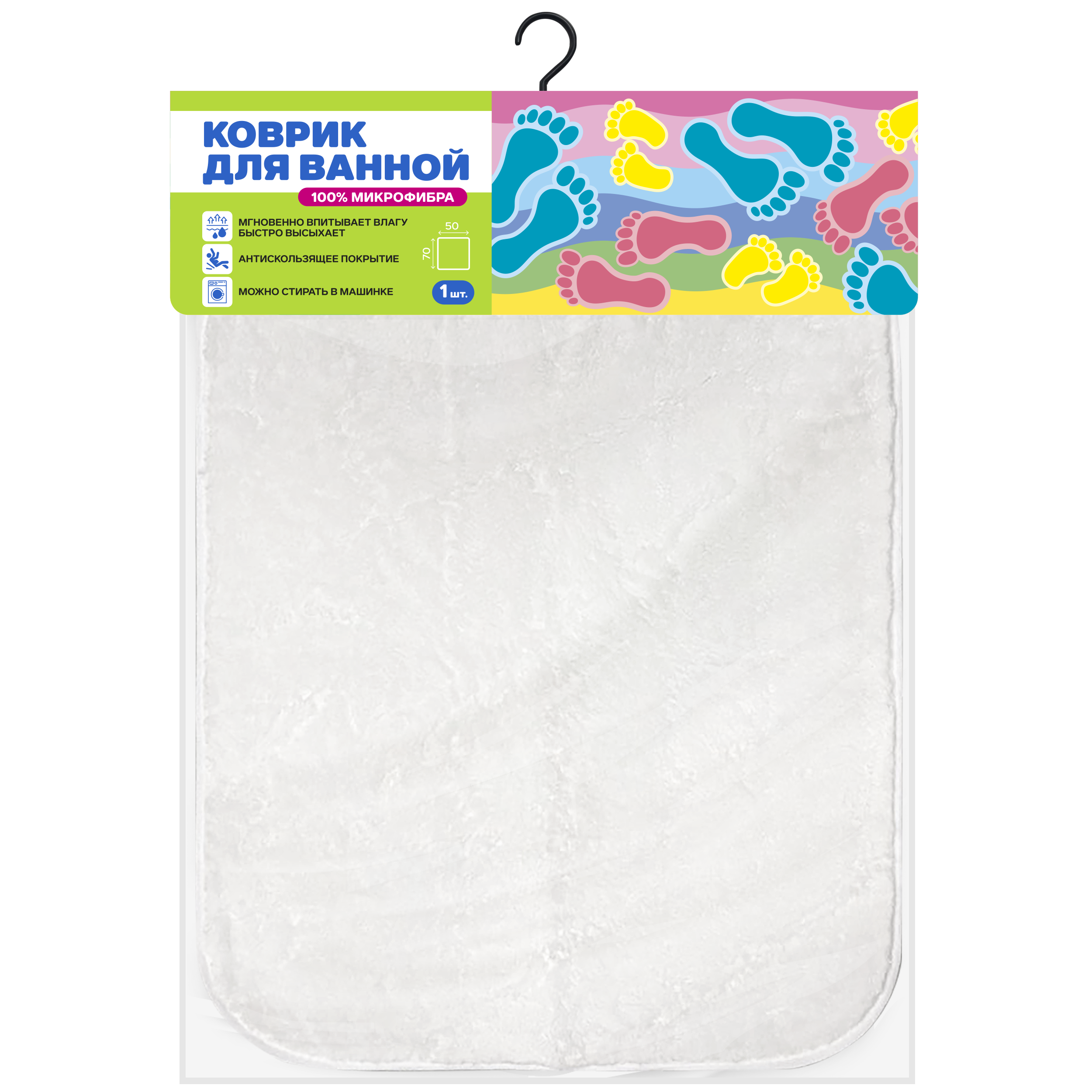 Коврик для ванной 50x70см микрофибра белый *акция