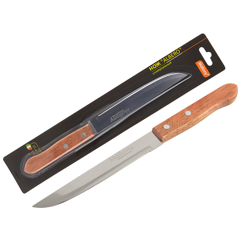 Интернет-магазин «Витрина 59» предлагает купить товар «Нож кухонный дерев ручка 15см универсальный сталь 3CR13 SS Mallony (72)» по цене: 130.44 руб. Артикул товара - 005167. Вы можете оформить заказ через интернет-магазин или по телефону +7 (950) 45-67-67-6. Дополнительную информацию о продаже товаров из каталога «Хозтовары» вы можете получить у нашего менеджера. Звоните!