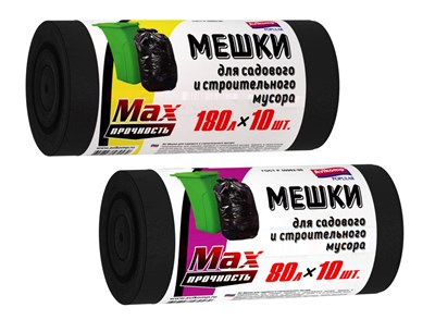 Пакеты для мусора 180л 10шт 38мкм рулон ПВД черный Avikomp MaxПрочность (10)