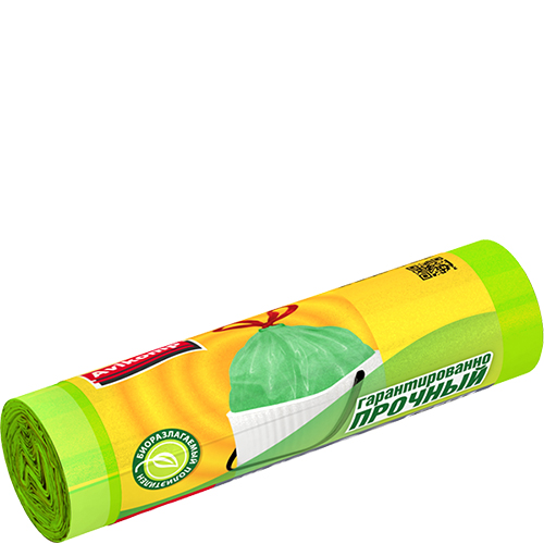 Пакеты для мусора 35л 15шт 9мкм завязки рулон ПНД зеленый биоразлаг Avikomp Prestige (25)