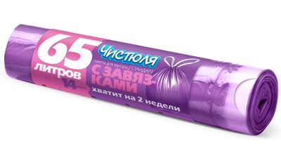 Пакеты для мусора Чистюля завязки 65л 14шт (25)