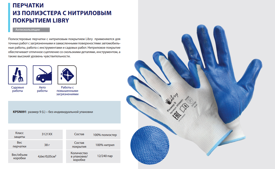 Интернет-магазин «Витрина 59» предлагает купить товар «Перчатки полиэстер облив нитрил р.10 XL Libry (12/240)» по цене: 6 467.00 руб. Артикул товара - KPSN0101. Вы можете оформить заказ через интернет-магазин или по телефону +7 (950) 45-67-67-6. Дополнительную информацию о продаже товаров из каталога «Хозтовары» вы можете получить у нашего менеджера. Звоните!