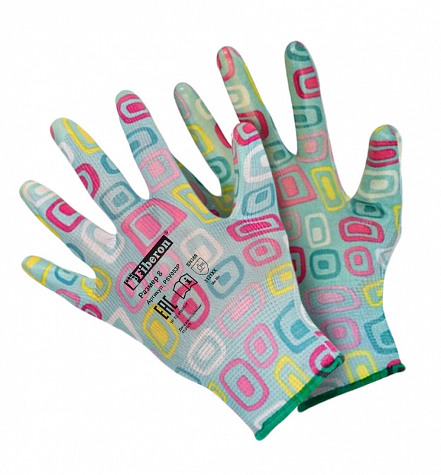 Перчатки полиэстер облив полиуретан р.8 садовые цветные Fiberon (120)