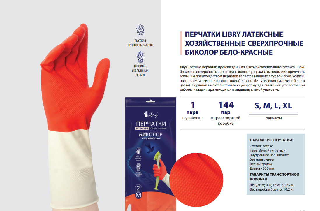 Интернет-магазин «Витрина 59» предлагает купить товар «Перчатки латекс сверхпрочные биколор XL Libry (12/144)» по цене: 9 792.00 руб. Артикул товара - KHBIC4WR. Вы можете оформить заказ через интернет-магазин или по телефону +7 (950) 45-67-67-6. Дополнительную информацию о продаже товаров из каталога «Хозтовары» вы можете получить у нашего менеджера. Звоните!