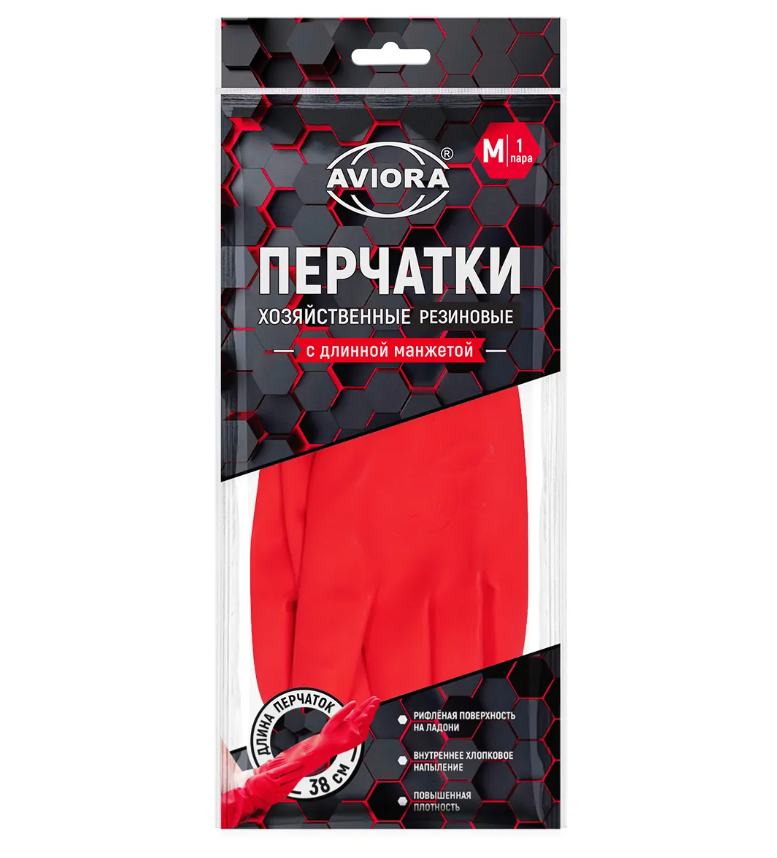 Перчатки резиновые сверхпрочные удл манжета M Aviora (12/60)