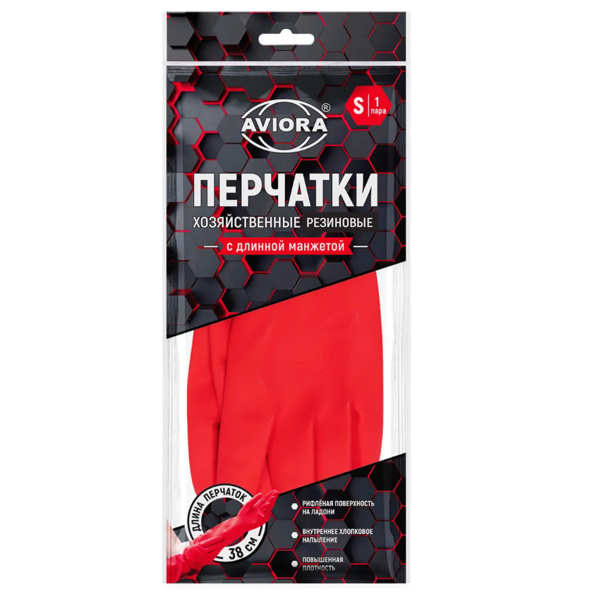 Перчатки резиновые сверхпрочные удл манжета S Aviora (12/60)