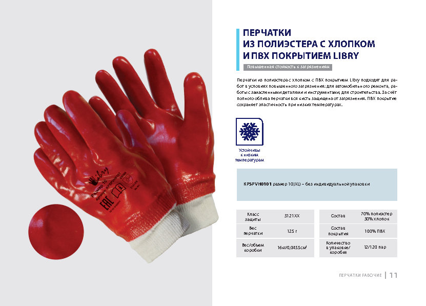 Перчатки из полиэстера с хлопком с ПВХ покрытием Libry подходят для работ в условиях повышенного загрязнения: для автомобильного ремонта, работы с замасленными деталями и инструментами, для строительства. За счёт