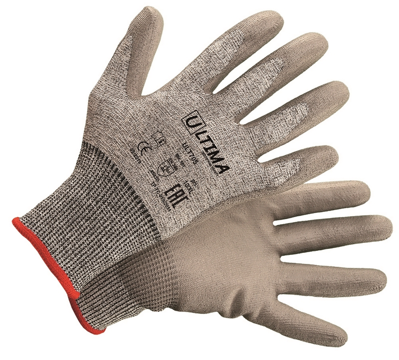 Перчатки волокно порезостойкое с полиуретановым покрытием 13кл р. 9 Ultima (12/144)