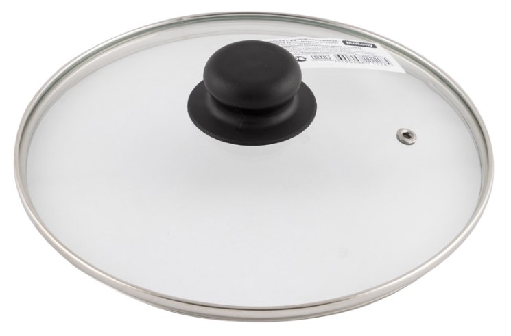 Крышка с ручкой стеклянная 22см., с метал/обод, паровыпуск, низ.