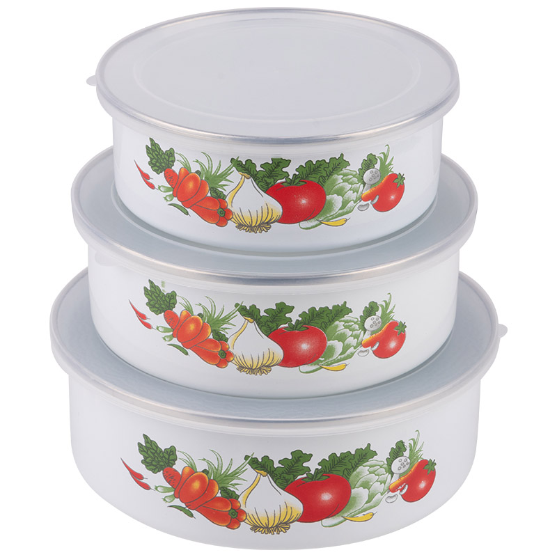 Миска Familia набор 3шт. сталь с крышками (600мл+850мл+1250мл) Mallony